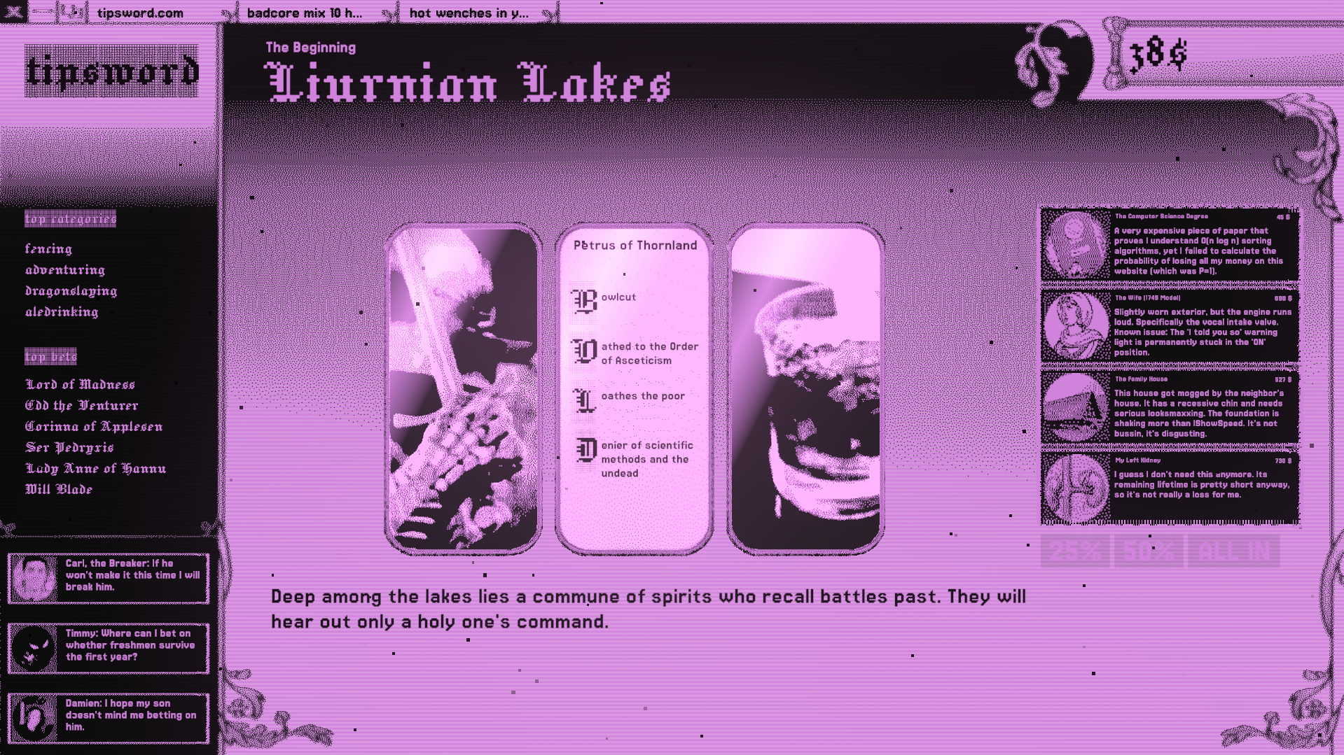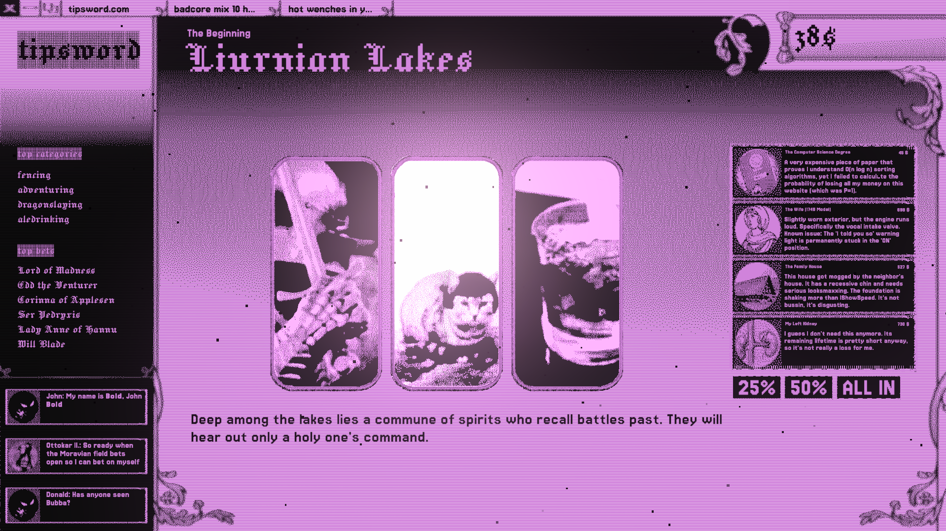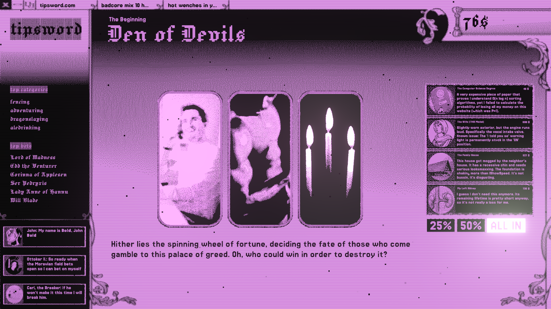| Tags | 2D, Funny, gambling, Graphical User Interface (GUI), Mouse only, Narrative, No AI, Singleplayer, Unity |